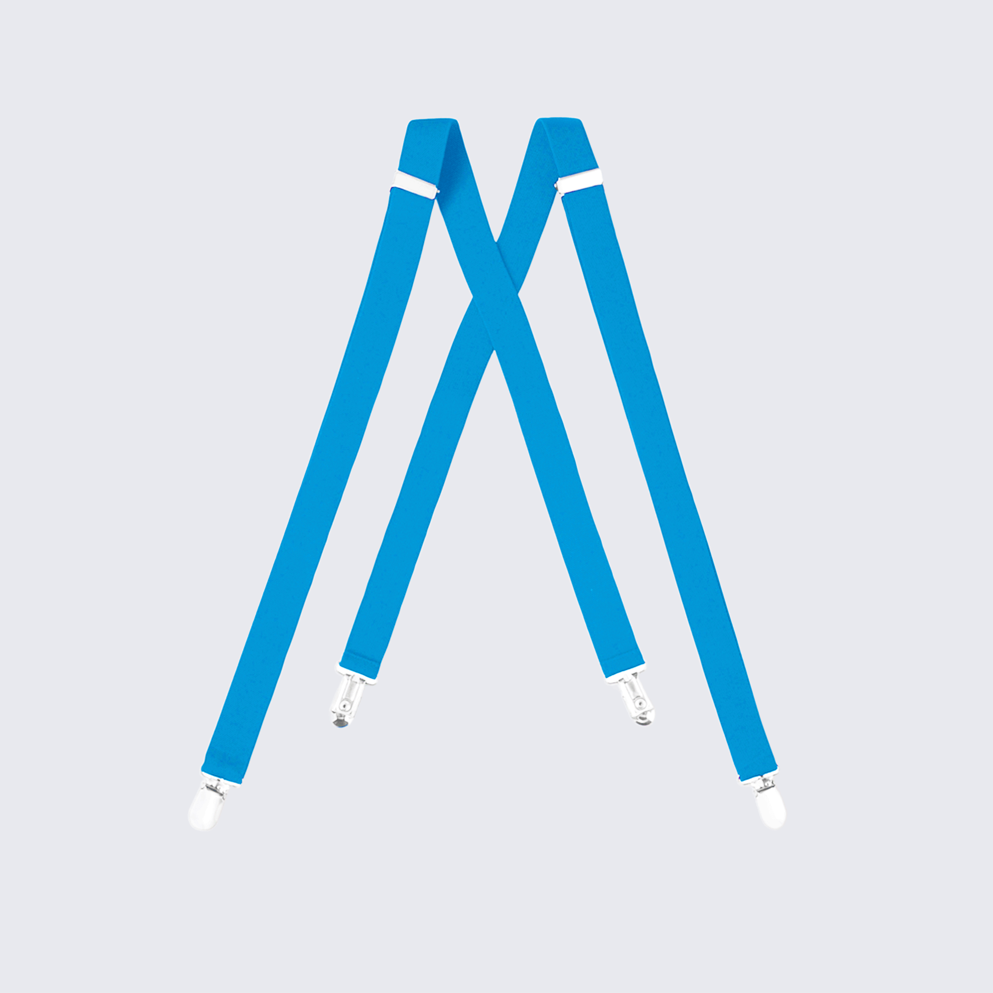 This turquoise suspenders includes three clips that are sturdy and secure, with rubber teeth that will not tear or damage your child's clothing. Made with soft, child safe materials to ensure comfort. Adjustable Size 6M/4Y is recommended for children 6 months to 4 years old. Straps are adjustable in length from 13 inches to 19 inches. Size 5/16Y is recommended for children 5 to 16 years old. Straps are adjustable in length from 20.5 inches to 31.5 inches Item is nicely packaged in a see-through box, perfect for gifting.
